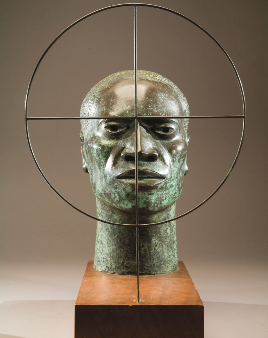 Elizabeth Catlett made this terra-cotta sculpture of a young black man in 1955 and called it "Target," (High Museum of Art). The beautifully rendered naturalism of the features recalls the portrait bust tradition of the Ife and Benin cultures, (Yoruba) that originated in modern Nigeria. Compare Catlett's sculpture with "Head of an Oni (king)" (National Commission for Museums and Monuments, Nigeria), which dates to the 12th-13th centuries. The work is cast in brass, a highly sophisticated and technical method mastered by the Ife and Benin cultures.